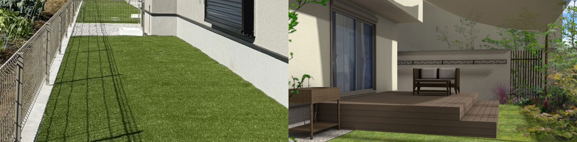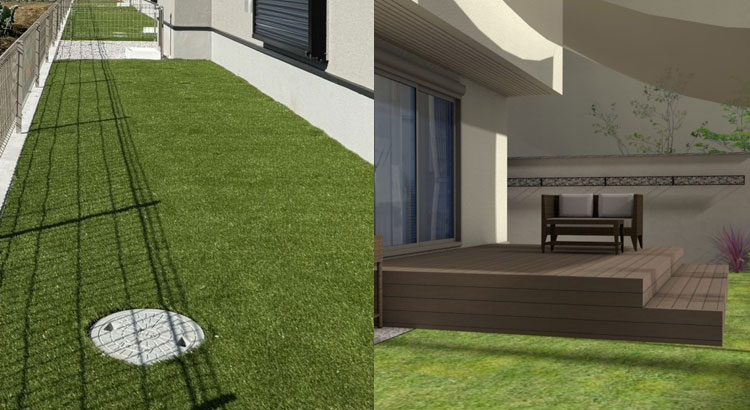 一年中グリーンが楽しめる、手入れいらずの人工芝。
